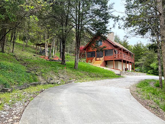 No, You're Not in Gatlinburg - but You Sure Feel Like It! Rustic Log Cabin Perched Beautifully on 11 Acres Overlooking the Rolling Hills of NKY! 3 Bedrooms*2 Full Baths*2 Story Gathering Room with Stone Woodburning Fireplace*Great Kitchen complete with Stainless Appliances* 2 Beds & Full Bath on 1st*Owner's Retreat & Loft/Study on the 2nd Level*Screened Porch & Expansive Front Deck to Enjoy the Peaceful, Serene Views & Rolling Hillsides! Full Basement with Side Entry Garage & Plenty of Parking*Wood  Stove Heating to Use if You Choose to (plenty of fire wood on site)*New Roof*Heat Pump approx 7 yrs New*Newer Gutter Guards*Home was Recently Stained with High Quality Stain w. Extremely Low Maintenance*Shed for Hobby/Storage/Playhouse & Another for Toy/Tool Storage*Dog Pen/Maybe Your New Chicken Coup! Outdoor Patio Areas with Multiple Firepits for Entertaining*Pre-wired for a Hot Tub*Heavily Wooded with Trails for Hiking & Riding RV's*Turkey & Deer Feeders*Alta Fiber High Speed Internet*One Year Home Warranty Included for New Owner!