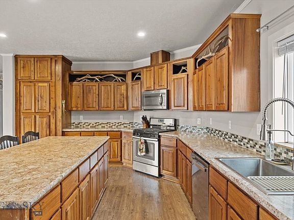 Ranch style, one level. Get the best of both worlds country charm and convenience just 15 minutes from Downtown Billings and 5 minutes to the Yellowstone River and Briarwood Golf Club. This awesome 3.49-acre property offers beautiful valley views, county maintained road and room to spread out. The 4-bed, 2-bath home has an open layout perfect for everyday life or hosting friends. The kitchen features a big island with a snack bar, gorgeous black walnut cabinets, and a roomy pantry to keep things organized. The primary suite has a huge walk-in shower, double sinks, and an oversized closet. There’s also a finished 16x24 addition with its own entrance great for guests, an office, or hobby space. Outside, enjoy a 16x16 deck, 24x24 garage, storage shed, circle driveway, plus a greenhouse and chicken coop ready to go. Can assume VA loan. Info deemed reliable but not guaranteed. Buyer/buyer agent to verify. 5.75 interest rate.