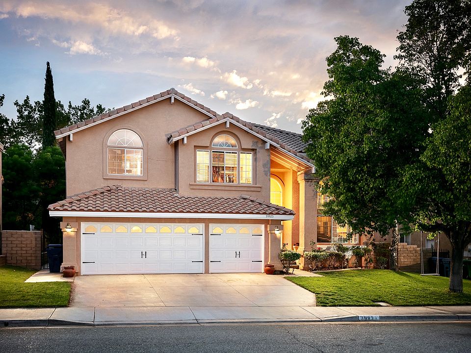 ***LIVE BEAUTIFULLY!*** West Palmdale Rancho Vista 5 Bedroom Pool Home w/ A 3 Car Garage! NO HOA & NO Mello-Roos! High Ceilings Upon Entrance w/ Nice Natural Lighting! Adjoining Formal Living & Formal Dining Area. 3 Fireplaces Throughout The Home! The Spacious Kitchen Boasts Granite Counter-tops, A Center Island, Plantation Shutters, A Pantry, Breakfast Nook, Bar Area & Opens To The Family Room! Downstairs Bedroom & Full Bathroom! Beautiful Spiral Staircase Leads To The HUGE Master Suite Which Showcases Vaulted Ceilings, A Fireplace, His & Her Sinks, A Separate Tub & Shower, And Walk In Closet! The Private Backyard Offers A Gated Sparkling Pool, Grass Area, & Covered Patio! Located In An Excellent & Quiet Community In Rancho Vista, This Beautiful Home Is A Must See!