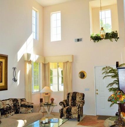 This two- story home is located in the Antelope Valley Country Club Estates located near the freeway, shopping and restaurants. It is an elegant light filled home featuring a soaring vaulted ceiling in the living room area, an open concept kitchen family room with a fireplace. Kitchen counter tops are clean easy maintenance Corian. The French doors off the kitchen lead to a beautifully landscaped spacious back yard with a large covered patio. The second floor has three bedrooms plus a loft/bedroom area. The master bedroom features an ensuite, two closets and a lovely view of the trees outside the window.