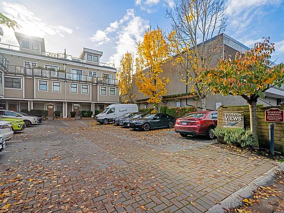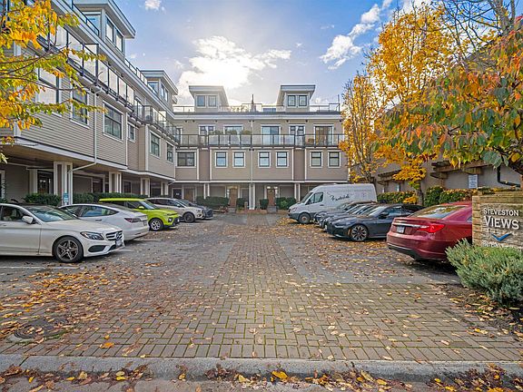 Welcome to Steveston Views. This rare corner townhome in the heart of Steveston Village features 2 spacious bedrooms, each with its own ensuite, and elevated ceiling heights that create an airy, roomy feel. Enjoy bright open living and an oversized private rooftop deck with 360° mountain and ocean views - perfect for relaxing or entertaining. Just steps to Steveston Fisherman's Wharf, shops, cafes, and the waterfront boardwalk, this home captures the best of coastal living. Includes 2 secured parking stalls in a boutique, well-maintained complex.