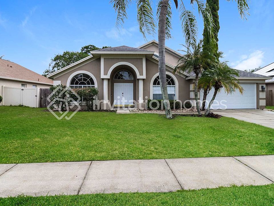 Home Features and Amenities: Air Conditioning, Fenced Yard, Garage, Granite Countertops, Kitchen Island, Long Lease Terms, Luxury Vinyl Plank, Pet Friendly, Pool, Primary Bedroom on Main, Single Story House, Smart Home, Stainless Steel Appliances, Tile, W/D Hookups, and professionally managed by Invitation Homes.