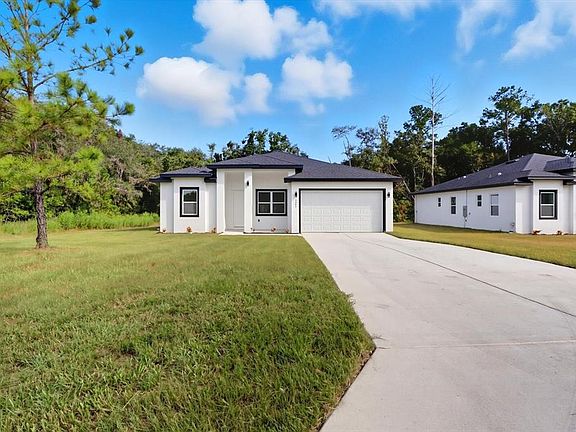 Welcome to this brand-new 3 bedroom, 2.5 bathroom home with a dedicated home office in the heart of Dunnellon, FL! This beautifully designed residence combines modern finishes with a functional open floor plan, perfect for everyday living, working from home, and entertaining. Inside, you’ll find contemporary tile flooring throughout, a spacious kitchen with quartz countertops, wood cabinetry, a large kitchen island, and stainless steel appliances (refrigerator, dishwasher, range, and microwave). The open-concept design flows seamlessly into the living and dining areas, enhanced by modern light fixtures and plenty of natural light. The dedicated home office/flex room offers a quiet space ideal for working remotely or can easily be converted into a playroom or hobby area. The owner’s suite features a roomy walk-in closet and a luxury bathroom with dual sinks and a sleek walk-in shower. The bathrooms are finished with elegant, modern details. Additional highlights include a 2-car garage and a covered lanai overlooking the spacious backyard—ideal for relaxing or outdoor dining. This home is not only stunning inside and out, but also perfectly located near the Rainbow River and Rainbow Springs State Park, offering endless opportunities for kayaking, swimming, hiking, and biking. Dunnellon’s charming local shops, dining options, and nearby recreation make this home a must-see. Don’t miss the chance to own this beautiful new construction in a prime location!