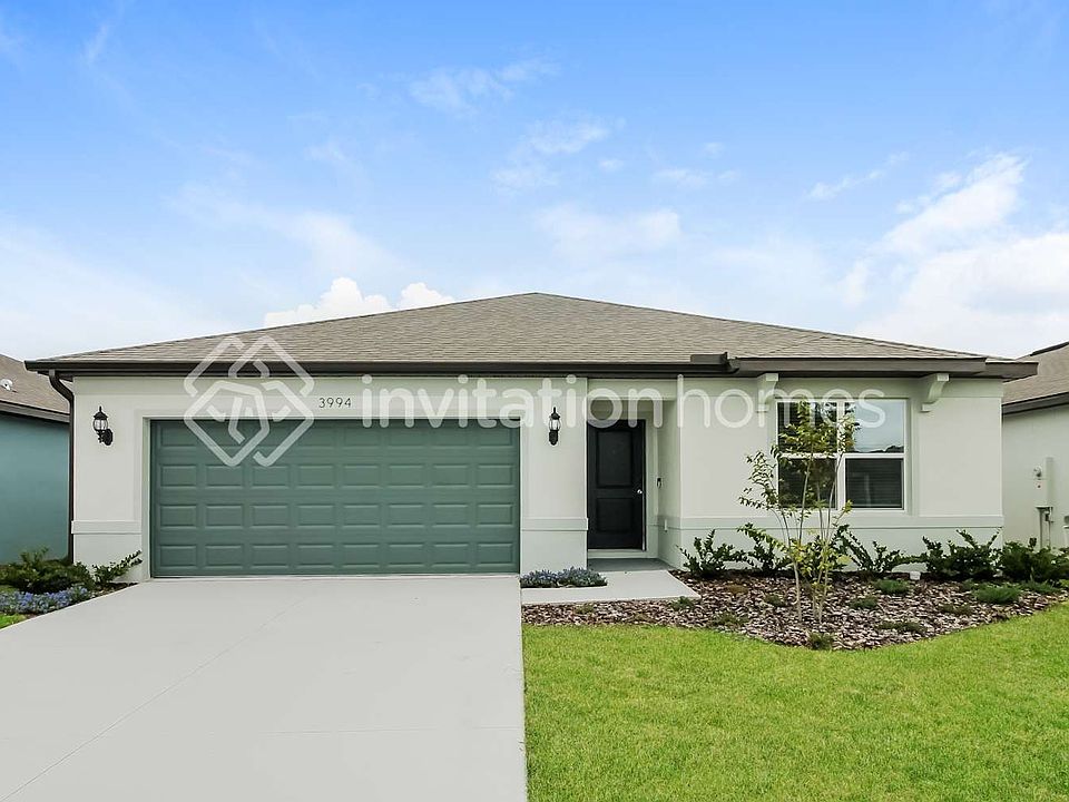 Home Features and Amenities: Air Conditioning, Fenced Yard, Garage, Kitchen Island, Long Lease Terms, Open Floorplan, Patio, Pet Friendly, Primary Bedroom on Main, Quartz Countertops, Recessed Lighting, Single Story House, Smart Home, Stainless Steel Appliances, Tile, Walk in Closet, W/D Hookups, and professionally managed by Invitation Homes.