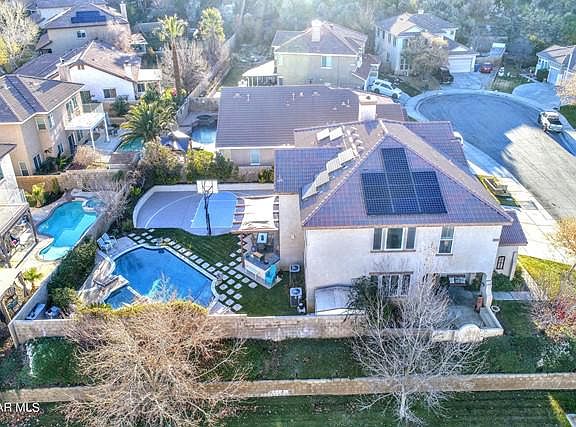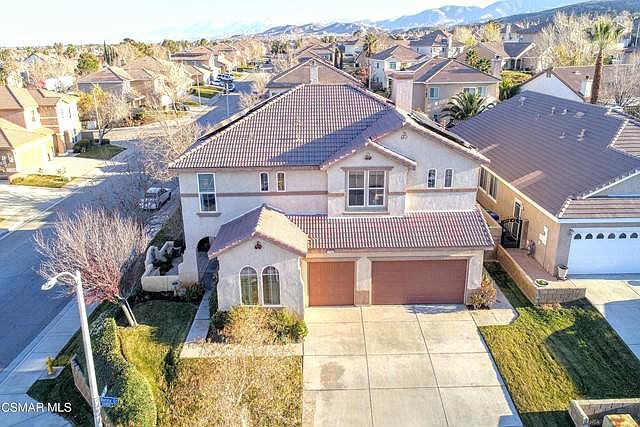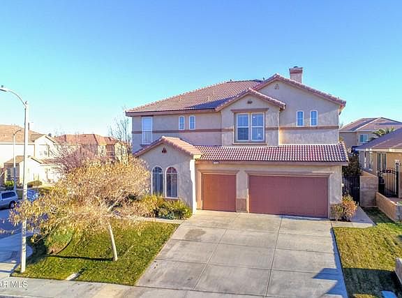 Entertainer's paradise! Welcome home to this beautiful Rancho Vista home in Palmdale. This spacious home features 5 bedrooms, 3 bathrooms and 3339 square feet of living space. The fabulous yard is perfect for outdoor living complete with a sparkling pool, built-in barbecue and sport court. The expansive living room has high ceilings and plenty of natural light. The remodeled kitchen opens up to the great room, great for entertaining. One of the home's 5 bedrooms and a full bathroom are situated on the main floor. The remaining 4 bedrooms and laundry room are upstairs. The primary bedroom is spacious, and the large ensuite bathroom features dual vanities and dual oversized closets. The home is zoned for the sought after Idea Academy Magnet school.