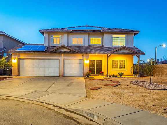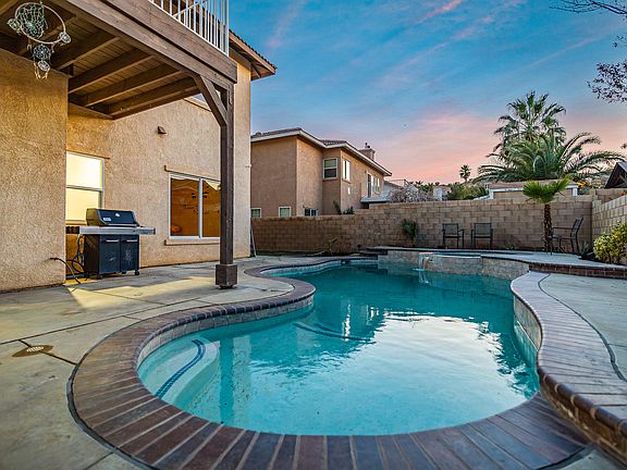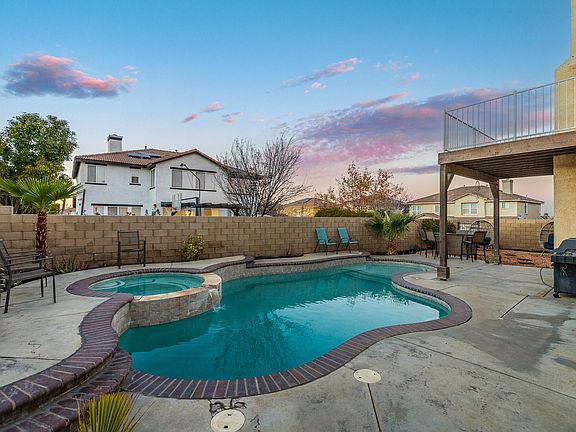 ***LIVE BEAUTIFULLY*** West Palmdale 6 Bedroom Upgraded POOL & SPA Home w/ A 3 Car Garage & PAID Solar! NO HOA & NO Mello-Roos! Located In The Heart Of Ranch Vista On A Quiet Cul-De-Sac, This Home Offers An Adjoining Formal Living & Formal Dining Room, A Downstairs Bed w/ A Full Bath, And A Spacious Family Room w/ A Cozy Fireplace. NEW Interior Paint, Premium Wood Laminate Flooring, And Upgraded Baseboards Through Enriches The Home! The Modern Looking Kitchen Boasts Granite Counters, Plenty Of Cabinetry,  LED Lighting, Tile Backsplash, And A Center Island w/ Barstool Seating! Upstairs Large Primary Suite Showcases A Private Balcony w/ Views, Great Size Walk-In Closet, Dual Vanities, And A Separate Tub & Shower! HUGE 6th Bedroom That Can Accommodate 2 Beds Or Can Be Used As A Loft.  Entertain Friends And Family In Your Oasis Backyard That Has A Covered Patio, And A Pool & Spa! This Beautiful Pool & Spa Home Is A MUST See!