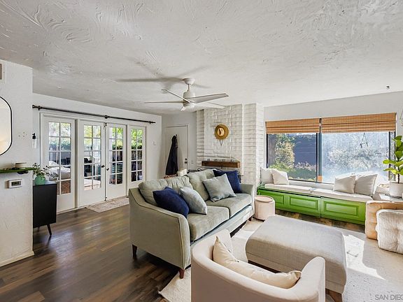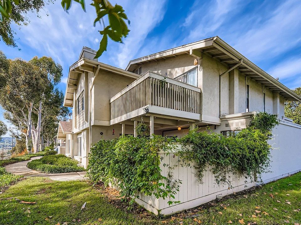 This spacious 3 bedroom townhome in Playmor Terrace West blends comfort and convenience in a prime central UTC close location. The open floor plan on the main level features wood style LVP flooring, a bright living and dining area with a cozy fireplace, and an updated kitchen with granite counters, stainless appliances, and plenty of cabinet space. French doors open to a private patio ideal for outdoor lounging or dining. A full laundry room and guest half bath complete the first floor. Upstairs, the generous primary suite offers fantastic natural light, excellent closet space and access to a sunny balcony with views to the canyon and the greenbelt. Two additional bedrooms and two full baths provide great flexibility for work-from-home, guests, or family needs. Other highlights include a whole house fan, ceiling fans in all bedrooms, a skylight over the stairway, and two assigned parking spaces—one covered, one uncovered. The community features two pools, a nature trail to rose canyon, a peaceful atmosphere, and close proximity to UCSD, shopping, dining, parks, and major freeways.