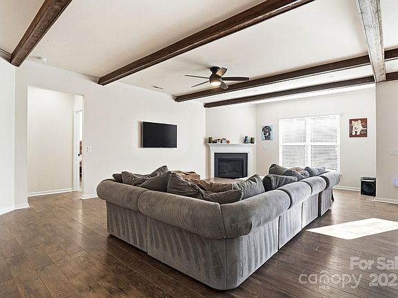 Welcome to this beautifully maintained ranch-style home offering a spacious open layout in highly desirable Indian Land. The inviting floor plan features a large great room with exposed ceiling beams, abundant natural light, and a cozy gas fireplace—perfect for both entertaining and everyday living. The chef’s kitchen boasts granite countertops, stainless steel appliances, gas range, tile backsplash, an oversized island with seating, and ample cabinetry, all flowing seamlessly into the dining area.