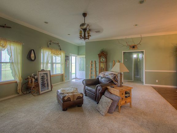 Large 2800 sq.ft. RV attached Garage with High Ceilings & Lots of Space. Could hold up to 9 Cars & RV Hookup included. Newer Aerobic Septic system. Wrap around Porch. Additional Detached 2 Car Garage. Horses permitted. Home sits on 2.5 Acres.