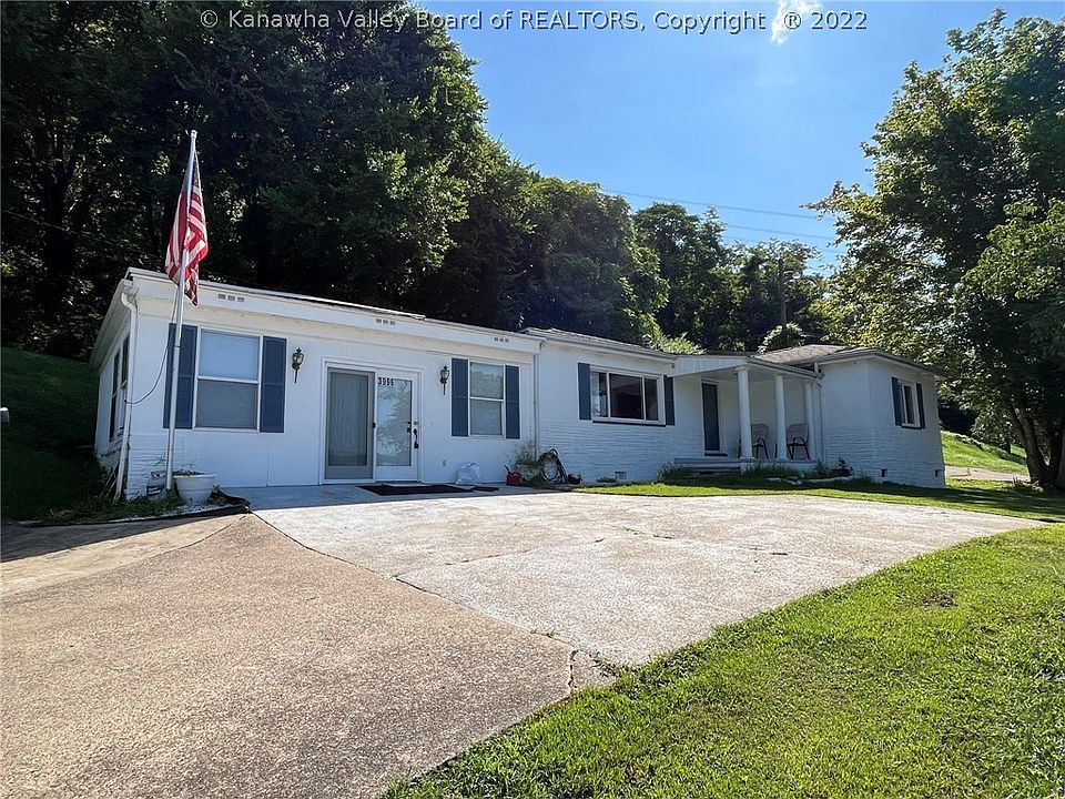 Spacious rancher with view of the Kanawha River. Features include 3 beds / 1.5 baths. Hardwood floors. Formal living room plus huge family room. Formal dining area. Primary bedroom has private 1/2 bath. Seated on nearly 1 acre and just minutes from interstate 64 and all of the conveniences of Cross Lanes, Poca and Nitro. Located just across from the public boat ramp. Seller is relocating and has priced BELOW APPRAISED VALUE.