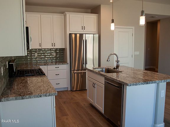 TURN-KEY NEW BUILD! SOLAR! Perfect 3 bedroom 2 bath by Mandalay Homes in THE DELLS. Enjoy low utility bills & eligible tax rebates! The entire energy-efficient home features the beautiful look & feel of wide plank hardwood flooring but with a hassle-free waterproof product (LVP). A cozy fireplace is featured in the great room which opens to your kitchen full of perfect colors & textures. The beautiful kitchen will impress everyone: upgraded white shaker cabinets with extra large drawers, a full backsplash featuring artisanal hand-made-look tile, granite countertops (even in the bathrooms!), & a built-in-looking fridge. Throughout the home you will find two-tone paint & window coverings in all the right places. A large covered patio is just right to enjoy the perfect Prescott weather.