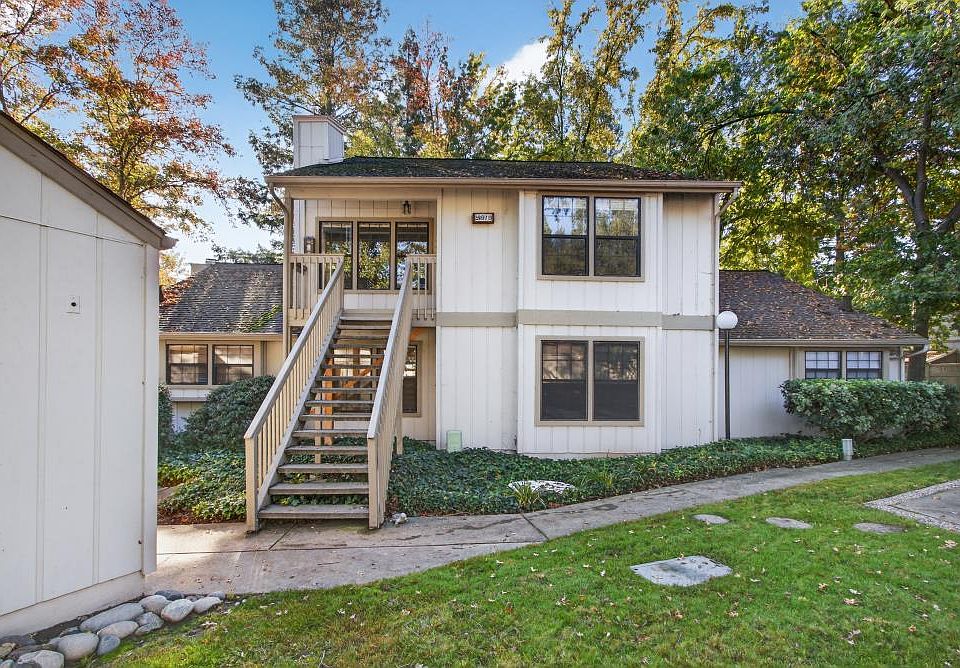 Nestled among undulating trees and serene lawns in a community that truly takes pride in its beautiful surroundings, this 2-bedroom, 2-bathroom condo with a large 2-car garage offers a peaceful place to call home while still being close to everything you need. The high, vaulted ceilings bring an airy and open feel to the space. Enjoy your private balcony looking out on the pond-like community pool and a wooded lawn where deer graze and squirrels scamper acrobatically. Both bedrooms are spacious and comfortable and command exceptional views, with the primary suite offering your own private bathroom. Just minutes from parks (Bannister, Jensen Botanical Garden, Ancil Hoffman), American River access points, local grocery stores, and neighborhood coffee shops, this home offers a welcoming balance of calm and connection. It's the kind of place where you can slow down, breathe, and simply enjoy where you live.