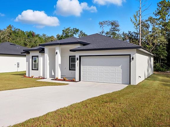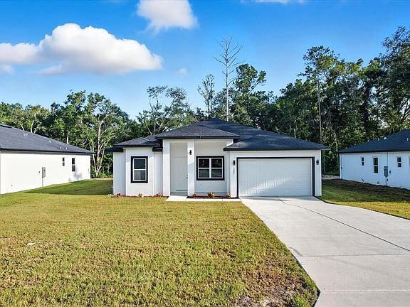 Welcome to this brand-new 3 bedroom, 2.5 bathroom home with a dedicated home office in the heart of Dunnellon, FL! This beautifully designed residence combines modern finishes with a functional open floor plan, perfect for everyday living, working from home, and entertaining. Inside, you’ll find contemporary tile flooring throughout, a spacious kitchen with quartz countertops, wood cabinetry, a large kitchen island, and stainless steel appliances (refrigerator, dishwasher, range, and microwave). The open-concept design flows seamlessly into the living and dining areas, enhanced by modern light fixtures and plenty of natural light. The dedicated home office/flex room offers a quiet space ideal for working remotely or can easily be converted into a playroom or hobby area. The owner’s suite features a roomy walk-in closet and a luxury bathroom with dual sinks and a sleek walk-in shower. The bathrooms are finished with elegant, modern details. Additional highlights include a 2-car garage and a covered lanai overlooking the spacious backyard—ideal for relaxing or outdoor dining. This home is not only stunning inside and out, but also perfectly located near the Rainbow River and Rainbow Springs State Park, offering endless opportunities for kayaking, swimming, hiking, and biking. Dunnellon’s charming local shops, dining options, and nearby recreation make this home a must-see. Don’t miss the chance to own this beautiful new construction in a prime location!