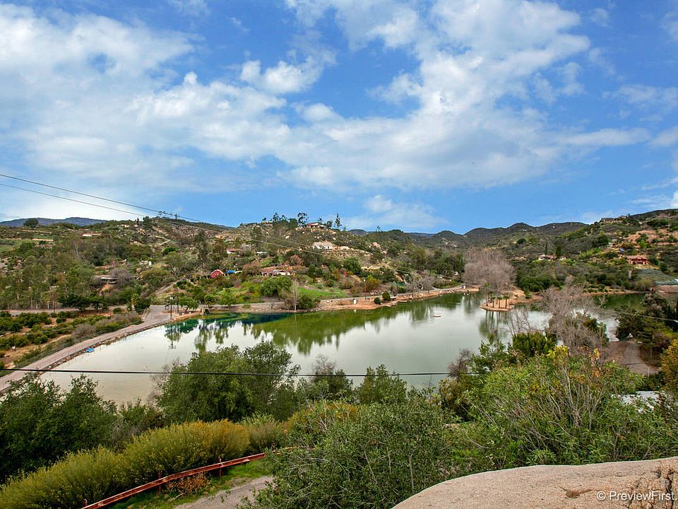 Private World. Welcome home to the most charming lake view house in the Ross Lake area of DeLuz. Enjoy full view of Ross Lake form the large custom windows from inside the living & dining room areas. Custom wainscoting, special trim appointments, & decor in rich neutrals invite relaxation throughout. Kitchen has all stainless steel appliances, that include a separate beverage refrigerator, & beautiful granite counters. This home boasts two fireplaces & the Master is plumbed for a pot belly stove.Large Master bathroom retreat includes a big jetted tub and shower. Separate entrance to extra room that will work as an office or project room is a plus. Surrounding yard is thoughtfully laid out with drought tolerant landscape and boulders. Multi-level deck overlooking the lake has vintage light bulbs invites lounging after hours. Don't forget the detached newer 2 car garage and back office room/game room etc. Security wise, owner took time to install area with 8 cameras and house-wired security system. Located 15 minutes from downtown Fallbrook or Temecula (and 30 minutes from Temecula wine country/ and up the road from North County beaches) this home is waiting for you with all Lake privileges. Whether it be year round or your private weekend getaway - this is truly 3.3 acres of privacy and beauty.