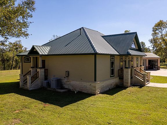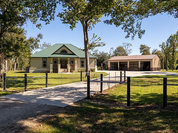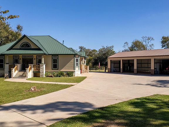 Beautiful 13-acre estate with 983' of Oyster Creek frontage. This 2510 sq. ft. custom country home offers 2 bedrooms, 2 baths, and an open-concept design perfect for entertaining. The chef's kitchen features custom cabinetry with pull-out drawers, double electric ovens, and an induction cooktop, and premium granite throughout the kitchen, baths, and laundry. The primary suite includes a heated bathroom floor, large shower, his and hers closets, and a safe room. ADA 3'0" doors throughout. Built on a pier-and-beam foundation with under-house closed-cell foam insulation and lighting and a standing seam metal roof. A 30'X50' three-car garage and workshop. Large concrete drive surrounds the home and barn. Enjoy security and privacy down a 1400' driveway and manicured creek frontage ideal for fishing or launching a johnboat. Newly fenced with premium field fence and galvanized T-posts. Property is unrestricted and has an Agricultural Exemption for cattle and the benefit of a lower tax rate.