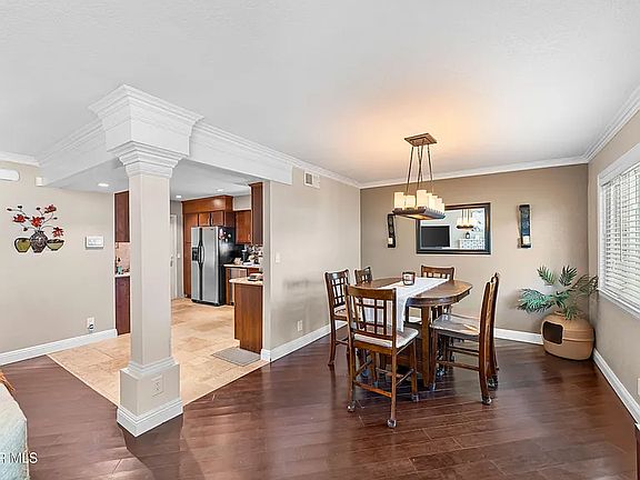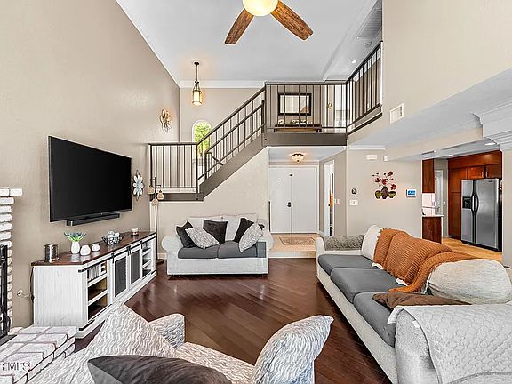 Experience refined living in this beautifully updated 2-bedroom, 2.5-bath condo offering the perfect blend of style, comfort, and convenience. The open-concept floor plan is ideal for both entertaining and everyday living, featuring soaring vaulted ceilings, recessed lighting, and elegant crown molding. Gorgeous cherry wood floors flow seamlessly through the dining area and spacious great room, creating a warm and inviting atmosphere.