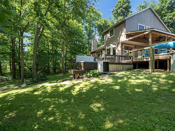 This home is for the true lover of nature and serenity! Private retreat nestled in wooded setting, close to all modern amenities. Winding driveway that takes you through a canopy of gorgeous trees. Pond w/fountain. Traditional contemporary custom home. Gorgeous cherry & oak wood flooring in great room, dining,& kitchen. Granite countertops, stunning backsplash, under cabnt light, commercial size fridge, dbl ovens, & more. Slider to fully covered side deck w/access to pool, hot tub, and senic views. 2st flr mstr w/updated bath & DREAM Mstr closet. Finished walk out bsmt w/sauna, full bath w/steam shower, stone fireplace, reclaim wood mantle & walls. 2nd flr is open to great room w/loft area. Huge 3 car garage/Workshop w/ample parking. Stream, bridge, firpit, shed, Come see for yourself!