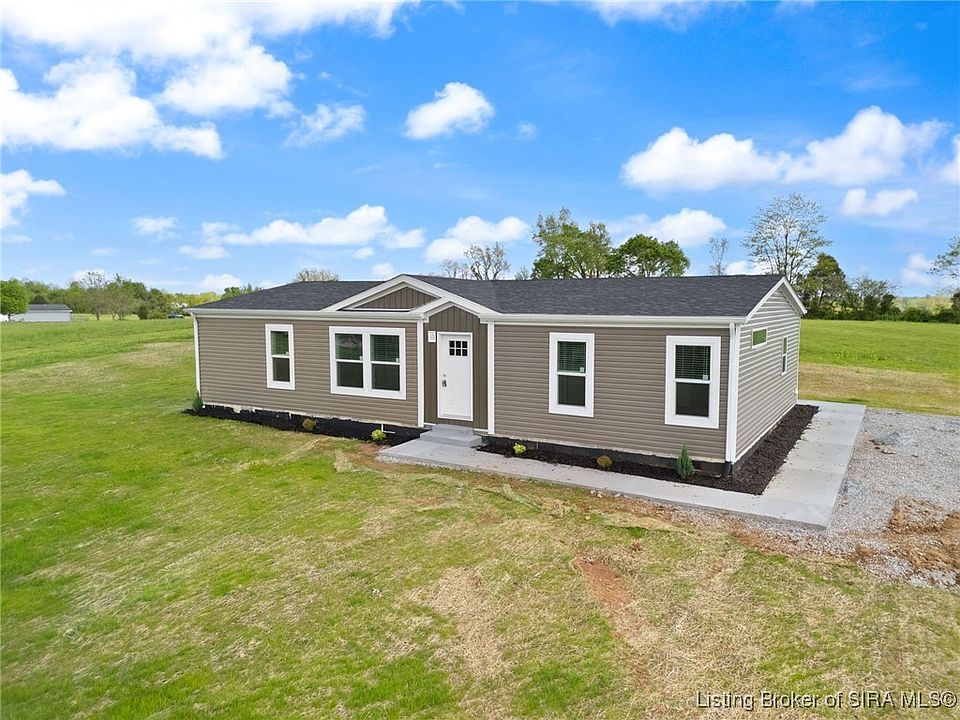 Experience country living with a brand-new construction home, offering 1,800 sq. ft. of meticulously designed living space on 1.5 acres of flat, usable land. As you step inside, you'll be greeted by an open-concept layout enhanced by lofty ceilings. The large double-pane windows flood the home with natural light, creating a warm and welcoming ambiance. The three-dimensional roof adds a touch of architectural elegance. The main living area features durable vinyl flooring, perfectly complementing the plush carpeting found in the three spacious bedrooms, including a luxurious master suite. Each bedroom is equipped with ample closet space. The modern-style bathrooms are truly awe-inspiring, designed with contemporary fixtures and finishes that will leave you impressed. For those who work from home or need a dedicated space for productivity, the built-in office area is a standout feature. It includes a large window that allows natural light to pour in, creating an inspiring work environment. The heart of the home, the dream kitchen, boasts sleek laminate countertops, an abundance of cabinet space, and a large kitchen island perfect for meal prep and entertaining. Stainless steel appliances add a modern touch to this culinary haven. Conveniently located just minutes from State Road 64, this home offers easy access to all your daily necessities. Come and see this exceptional property for yourself. We promise it will exceed your expectations and leave you eager to make it your own.