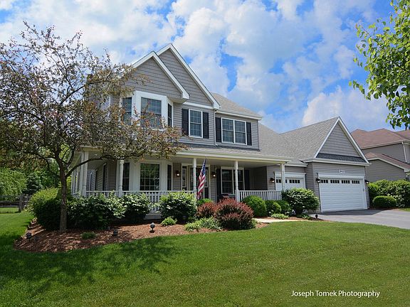 WHOA! This one is a beauty! Huge Wrap around front porch will welcome you home each day! Gorgeous 4 Bedroom Home in meticulous condition! Tons of UPGRADES HERE! Beautiful trim work, Remodeled Kitchen with professionally refinished cabinets, huge island, granite counter tops, butler pantry and stainless steel appliances. Freshly Refinished Hardwood Floors, Finished Basement with a wet bar, multiple recreation rooms, Office and Playroom. Three Bedrooms with Custom Walk-In Closets. Master Bedroom is massive with and extra seating room, master bathroom features dual sinks, soaking tub and separate shower, massive walk in closet with custom closet system including a huge island! 1st floor Laundry Room/Mudroom with a very large closet. Three-car garage with 2' extension & Overhead Storage. Tons of upgrades including refinished hardwood floors in 2021, New roof, siding, gutters and garage doors in 2017, Remodeled Kitchen in 2013, New Family room carpet in 2017, Pella Windows and much much more! This home backs to green space and a walking trail ( no back neighbors), Awesome brick paver patio with pergola! Highly rated school district and close proximity to La Fox and Geneva Train stations, walking distance to three Mill Creek Parks! 2 Min drive to local farm stand! Welcome Home!