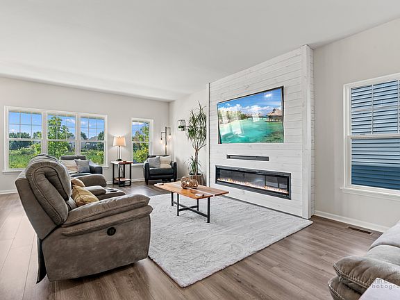 Stunning and elegant low maintenance village home in Mill Creek Subdivision. Features 4 bedrooms and 3 1/2 baths, finished basement and a two car garage. Light and airy open floor plan with tons of upgrades! The large living room features an electric fireplace feature with custom, built-in mantle and flows to the dining area and kitchen. Stunning kitchen with quartz countertops, white cabinets, updated light fixtures, pantry closet and all stainless steel appliances. Head upstairs for three bedrooms and two full bathrooms. The primary suite features a vaulted ceiling, custom walk-in closet, and an ensuite with separate shower, soaking tub and double vanity. DO NOT MISS the finished basement with a second electric fireplace and custom mantle, wet bar, bedroom, and full bathroom. Laundry is on the 2nd floor & powder room is on the main floor. Side door from the kitchen leads to the cozy deck. This community has miles of walking/biking paths, golf club, park district pool, and is close to local entertainment/shopping along Randall Road. This particular home is a quick walk to the Mill Creek pool and enjoys a tranquil pond view from the front door. Assessment covers lawn care and snow removal. Shows like a model home! You will not want to miss this one!