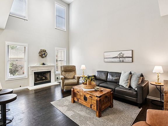Step into easy living with this beautifully updated Mill Creek Townhome, offering a perfect blend of style, comfort, and convenience. Nestled in a sought-after community, this 2-bedroom, 2.5-bath home is filled with natural light and modern finishes throughout. The open-concept layout welcomes you with hardwood flooring on the main level and a spacious family room featuring vaulted ceilings and a striking cast concrete fireplace. The kitchen is both functional and stylish, offering 42" white cabinetry, granite countertops, a breakfast bar, and newer stainless steel appliances. Upstairs, the serene primary suite features an updated en suite bath and a custom walk-in closet with built-ins for easy organization. A generously sized second bedroom also includes its own private bath-perfect for guests or family. The partially finished basement adds versatile living space, ideal for a rec room, office, workout area, and includes additional storage. Enjoy warm days on the covered front porch or entertain on the stamped concrete patio, complete with a retractable awning over the sliding door for shade and comfort. Other highlights include main-level laundry, an attached 2-car garage, and major system updates: newer appliances, roof, furnace, A/C, and water heater. Located near top-rated schools, shopping, La Fox train station, Delnor Hospital, and Mill Creek Golf Course, this low-maintenance home is move-in ready and perfectly situated for everyday enjoyment.