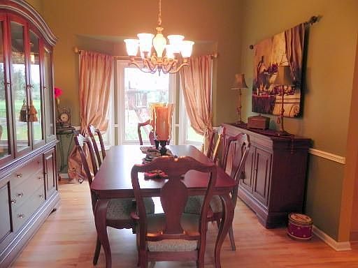 Golf course lot w/fabulous views! Loads of upgrades! Birch hardwood floors, French doors, crown molding/chair rail, volume ceilings, maple cabinets w/nickel hardware, Stainless Steel Kitchen Aid appliances, Corian counters. Stone fireplace in FR. J/J Bath, dual staircase, deep pour basement w/rough-in. Deck, brick paver patio, concrete patio, Floorguard garage floor. Playset included. Great location and community!