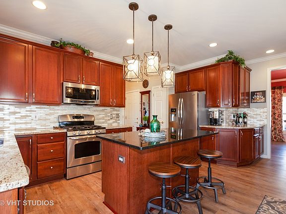 MOVE RIGHT IN! Former builder's model, recently updated, must see this! Crown molding throughout the main floor w/9' ceilings, plantation shutters in DR, office & FR. Engineered wood floors in hallway, dining room & kitchen. Newly remodeled kitchen only 2 years ago offers SS appliances, backsplash, & granite counter-tops. Open concept kitchen & family room, with stone fireplace. Large master bdrm. leads to master bath & AMAZING walk-in closet! Bdrm #2 & #3 also boast walk-in closets. Finished basement w/two entertainment areas, full bath & plenty of storage! Security system in home. Enjoy summer days under the pergola covering the paver patio w/patio lighting, gas fire-pit, gas grill hook-up, & blue stone steps. Invisible fence included in this perfectly-sized yard w/mature landscaping. NEW: Furnace 2018; AC 2014; roof 2015; Siding 2015. You're a quick walk to the Mill Creek swimming pool, & neighboring open space. Geneva schools & Geneva Park District, close to town & train station.