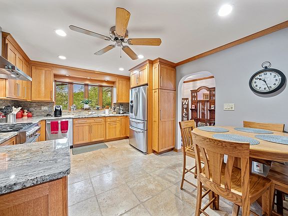 Minutes from 1-88 Interchange, Orchard and Randall Rd corridors your private Oasis awaits you. Situated among mature trees the 1 1/2 acre plus lot features a huge paver patio, koi pond, fiberglass saltwater pool, pool house, detached 2 car garage/shop with attached greenhouse and partially metal fenced yard completes this one-of-a-kind property. As you enter the home the Foyer leads you to the Living Room which features a vaulted ceiling with skylights. Continue into the Family Room that provides a panoramic view and access to the patio, koi pond, pool, and landscaped yard. The completely updated Kitchen features custom made quarter sawn oak cabinets with under cabinet lighting, granite counter tops and stainless-steel Viking and Bosch appliances. The owner's suite features a huge bathroom with separate vanities, oversized shower, air jet spa tub, walk-in closet and attached laundry room. The main level also provides a Dining Room, 2 additional Bedrooms and a full Bathroom with a steam shower. A finished basement offers an additional Family Room, Game Room with Bar, Full Bath and plenty of storage. The attached 3 car heated garage has a bay that is large enough to accommodate most pickup trucks, with plenty of additional parking in the driveway for guests. Along with the driveway access there is an additional access point east of the existing driveway for the 2-car garage/shop. The home has many updates that need to be seen to appreciate. Some of the updates include 6 panel oak doors and trim throughout the home, Grohe plumbing fixtures, Anderson and Pella windows and a Generac backup generator. All exteriors of the house and building were painted in 2020, Other improvements include the attached garage redone 2017, HVAC replaced 2016, new roofs 2015, Kitchen and Master Bath 2014, paver patio and Fisher Paykel grill area with granite countertop 2013. The property is unincorporated which allows for lower property taxes. The home is connected to the City of Aurora water supply and the lot has a private well that is used for the pool, out buildings and irrigation system. The photography is great, but you need to view this home in person to really appreciate all that it offers. Property is being sold AS IS and includes a home warranty.