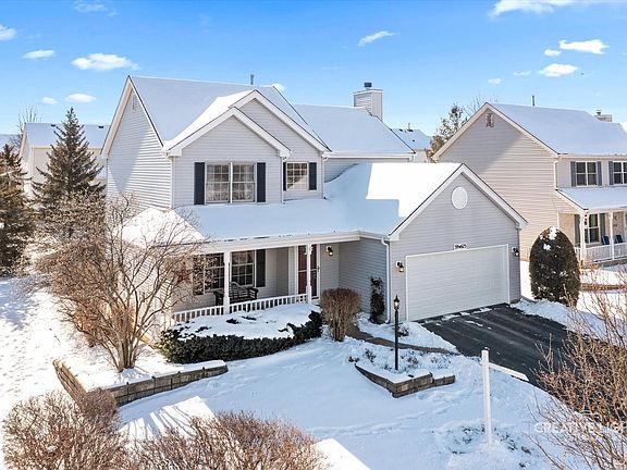 GREAT PROPERTY W/FABULOUS VIEWS & WRAP AROUND FRONT PORCH! Situated on Terney Square, a low traffic street with wonderful views, this 3 bed/3.1 bath home is across the street from natural prairie & golf course. Kitchen features updated stainless steel appliances, resilient wood laminate flooring, plenty of counter space, eating area & skylights. Kitchen opens to the spacious family room with built-in bookcases, gas start fireplace, recessed lights & sliding glass door which leads to the paver patio. Nice sized living room overlooks the front porch. Separate dining room is just off the kitchen. Spacious primary suite is freshly painted & features a vaulted ceiling, ceiling fan, convenient laundry chute & large walk-in closet. Primary bathroom is freshly painted & features a soaking tub & separate shower. Great entertaining space in the finished basement which features a full bath, large rec room, office, laundry & storage room. The backyard space is perfect for outdoor entertaining with brick paver patio & landscaped yard for privacy. Updates include new SS refrigerator 2021, SS dishwasher 2019, SS stove & microwave 2015, roof 2012, 2 water heaters 2012, AC 2008 & furnace 2008 (2023 new igniter, igniter sensor & thermostat). Award winning Mill Creek w/golf, tennis, swim, bike paths, ball fields & parks. Just 1 block to the neighborhood park. Close to Metra, tollway, Geneva schools, historic downtown Geneva, amazing restaurants & shopping.