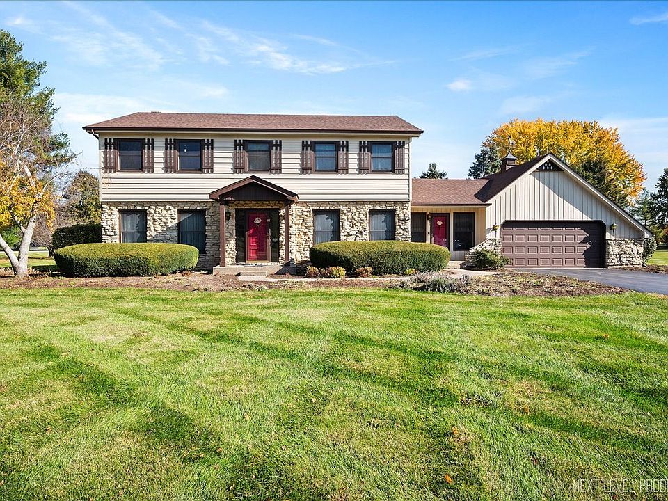 This wonderfully cared-for, two-story home is situated on a 1.33-acre lot in the Deer Run subdivision in Campton Township, just west of St. Charles. The residence features four bedrooms and 2.1 baths, including a formal living room and dining room. The main floor also offers a den, a fist floor laundry room with laundry sink (washer/dryer stay), double closets for storage, and an oversized two-car garage all accessible from the back service hall. The huge country kitchen is loaded with cabinets and counter space, recessed lighting, a brick wall with built ins, black appliances, a pantry closet, and a large bay window in the eating area with beautiful countryside views. This area opens directly to the family room, which features a stone wall with fireplace, mantle, and sliding glass door access to the deck for entertaining. The second level includes a Primary Suite with hardwood floors, a full bath, and a large walk-in closet. There are three additional bedrooms, all featuring ceiling fans and ample closet space, and full hall bath. The full basement is half-finished, making it a perfect recreation or play area. This property is located in the St. Charles School District (North High School) and offers easy access to bike trails, Route 64, and Randall Road. The Village of Campton Township, just minutes west of downtown St. Charles, provides its own quaint area of shopping and restaurants. Additional features in home include newer laminate flooring, hardwood floors, roof approx. 10years, a/c 2019, Furnace 2020, Home painted 2020, Deck painted Spring 2025, Newer windows, Interior freshly painted 2022. Seller prefers an AS IS sale. NON MANDATORY $100 a year HOA.
