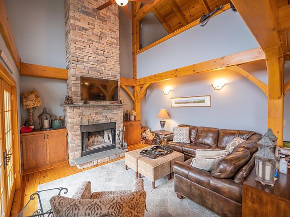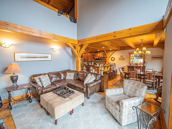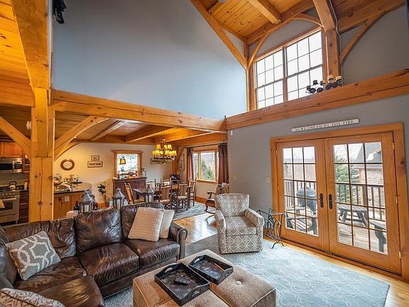 Stunning Post and Beam townhome at the base of the Mount Snow ski resort. This beautiful turn key unit was built in 2007 and affords easy access to the mountain with privacy and size typically only available further away. Enjoy rustic natural woodwork throughout thanks to the post and beam exposed construction, a large open concept living space with wood floors, vaulted great room, floor to ceiling stove fireplace that is wood burning, a large open custom kitchen with granite counters and stainless appliances, and ample dining space. There is a primary suite on the upper level with tiled shower, soaking tub, a spacious upstairs sleeping loft and office nook, main floor guest suite with jack and jill bath, lower level spacious bunk room and bath, tremendous family room area perfect for entertaining, and walk out access to an area under the deck which allows outdoor hot tubs. The back deck looks up at the ski slopes to easily check conditions, and the covered front porch allows for entry out of the elements. Additional features include radiant heat, a laundry room, spacious mudroom with room for gear, and easy access to the upper parking area shuttle for carefree mountain enjoyment.