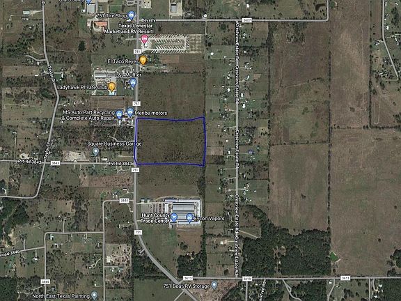 23.34 Acres of flat land with 828 feet frontage on FM751. New Survey showing 18.34 & 5 Acres. Selling 18.34 with 628' frontage on FM751