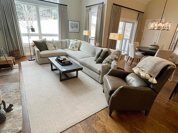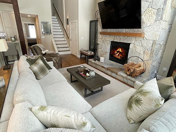 Watch the skiers and riders go by…this is the best in trailside convenience. “P” is one of the few buildings that gives you direct access to Carinthia and its new base lodge. But this condo could be your personal base lodge! Professionally re-constructed & designed open concept living space; cathedral ceiling in the kitchen/living/dining area, natural wood flooring that goes all the way upstairs and into the loft. Kitchen has custom cabinetry & new appliances including SubZero refrigerator, 30-bottle wine cooler, Wolf cooktop, oven, microwave, Cove dishwasher, fully-vented Asko W/D. Restoration Hardware/Arhaus/high-end furniture & fixtures, designer window treatments & wallcoverings throughout. Sony TVs with Apple TV in every room, 75-inch TV mounted above the living room’s fieldstone fireplace. Sonos music system also included. Every bathroom is fully renovated with highest end tile, two with heated floors. All closets are custom fitted with wall safe in primary bedroom. Panel doors & pocket doors with high-end hardware throughout. No detail has been overlooked. Furnace & water heater are less than 5 years old. This rarely available 4bdrm/4bath unit is undoubtedly one of the most tasteful & luxurious at Mount Snow. On-site amenities including a recently renovated and expanded clubhouse with an indoor pool, locker rooms, saunas, owner hot tubs, owner lounge, game room, exercise room, summer outdoor pool, tennis courts, a multi-use court, 2 large grills & a firepit.