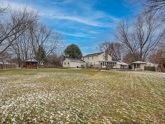 This wonderful home sits on a large cul de sac lot and offers an attached IN-LAW ADDITION in 2004 with a separate entrance, living area, bedroom, a full bath, laundry and a big kitchen! The main home has a spacious living room with new windows in 2022 that opens up to the private dining room. The updated eat-in kitchen offers all appliances, granite counters, display cabinets and a sliding glass door to the big deck and huge private yard. The fabulous family room features a warm brick fireplace with direct access to the 3 season porch. Head upstairs to find the spacious owners suite with a walk-in closet and a full bath with a new shower in 2020, 3 generously sized secondary bedrooms all with ceiling fans, big closets and new carpet in 2022, plus a large hall bath. The huge fenced in yard offers privacy plus two storage sheds, a gazebo, an elevated deck and a patio with a fire circle. A versatile, convenient location that is private yet still offers nearby shopping, schools, bike paths, forest preserves and easy access to highways. Updates include: two A/C units (replaced in 2019 & 2022), two furnaces in 2019, two hot water heaters (one replaced in 2019), sump pump in 2020, roof of front of the home and the garage replaced in 2020 and new well tank in 2019.