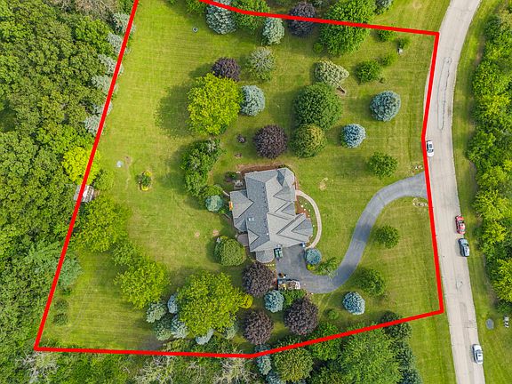 Incredible opportunity to own this custom, luxury home built in 1996 that sits on a 2.5 acre partially wooded lot! This home boasts over 3800 sq ft of above ground living space, as well as, approximately 1600 additional sq ft of finished basement. Upon entering the front door, you will be greeted by a magnificent, curved staircase and a two story foyer with an abundance of light pouring in from the oversized windows. An expansive living room on your right with extra high ceilings, and glass pocket doors, can provide you a living space to entertain in or a stately private home office that overlooks the front yard. A formal dining room with beautiful mill work is to the left of the front door with easy access to the kitchen for entertaining. The family room offers stunning views of the private backyard with two- story windows that flank the dramatic stone fireplace. The eat -in kitchen is just off the family room and offer's oak cabinets, double oven, a large kitchen island, pantry and plenty of counter space! An adjoining door leads you to a 3 seasons room where you can enjoy a cup of coffee in the morning and takes you into another sunroom that faces the back of the house and can be used as an office or sitting room. Up the grand staircase you will find three extremely spacious bedrooms, all with walk-in closets, a shared bathroom with large sink area, tub and shower. The primary bedroom consists of 2 large rooms, both with walk- in closets and a massive en-suite with two sinks, soaking tub and large separate shower with an abundance of cabinet space. This home can easily be converted into a 4 bedrooms upstairs house, by extending the hallway into the secondary room of the primary bedroom. Come back down to the basement where you will find another 1600 sq. ft of living space complete with a family room with a brick gas - start fireplace, large bedroom with walk in closet and a full bath. The basement also offers walk out access to private outdoor patio. This home is truly move-in ready having been fully refreshed on the interior with new paint in todays on trend color, along freshly cleaned carpets throughout the basement and second floors. Big ticket items including a new roof (10/23) and new AC and furnace (2021) will give you peace of mind so you can just enjoy the beautiful home. This home feeds into highly desirable St. Charles school district. This home can be purchased with the neighboring lot to create an incredible 5 acre property.