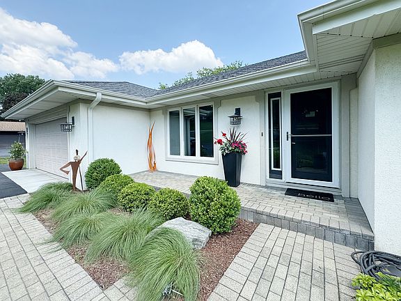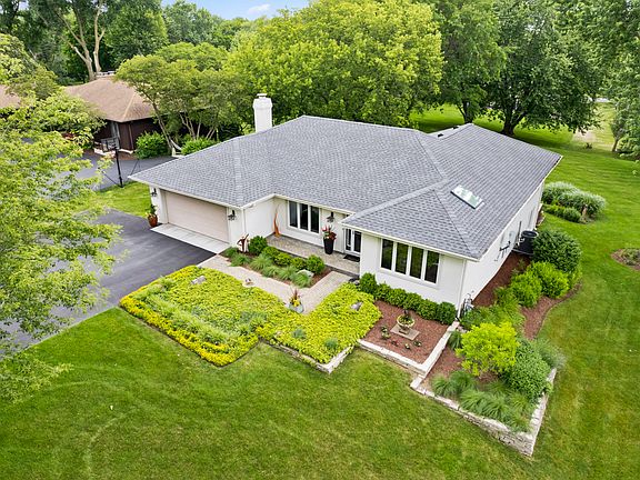 Welcome to this stunning contemporary ranch home in Lake Charlotte, a true gem nestled amidst gorgeous landscaping and mature trees with beautiful 3/4 acre yard. The warm and welcoming entrance opens into a spacious foyer, flanked by an elegant formal dining room and a handsome paneled library/office adorned with custom bookshelves. The living room, seamlessly integrated with the designer high-end kitchen, features a cozy fireplace and offers access to the deck and park-like yard, perfect for both relaxation and entertaining. The beautiful master suite boasts a newly renovated bath, laundry area and a walk-in closet, providing a luxurious retreat. The second bedroom is conveniently located near the newly remodeled full hall bath. The walk-out lower level with open staircase is an entertainer's dream, complete with a full wet bar, a family room, a game room, a third bedroom/flex room, 3rd full bath and large storage area. Additional highlights include an oversized 2-car garage, hardwood floors, and abundant windows that flood the home with natural light. The open floor plan is ideal for both family living and gracious entertaining. Don't miss the opportunity to make this exquisite property your own! 2000 sq feet on main level and 1500 in walk out lower level for 3500 sq feet finished with additional storage space too! Incredible location right across from Otter Cove Aquatic Waterpark, James O. Breen Park, District Soccer and Football Fields---near the Great Western Trail, Bike Trails, Forest Preserves, and Disc Golf Course. A few minutes to downtown St. Chares & Geneva, Fox River, and Lafox Metra Station!