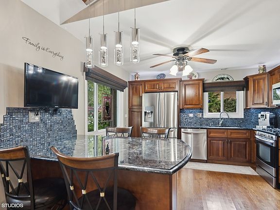 Open concept for this contemporary split-level - beautifully updated and meticulously maintained | Bring your fussiest buyers | Hardwood flooring throughout | Living room with vaulted ceilings and an abundance of canned lighting | Gourmet, eat-in kitchen with stainless steel appliances, custom cabinetry and stone counter tops | Both baths are thoughtfully updated and the LL bath has a walk-in shower | Spacious yet cozy family room with tile flooring and a wet bar | Convenient laundry area that also provides access to a large yard teaming with foliage and loads of privacy | This home functions wonderfully, with a space and place for everyone! | All this, on a quiet street, walking distance to Conrad Fischer elementary and Churchville middle school. Folk here in the neighborhood walk to Jewel and local shopping off Grand Ave plus, it's a short drive to in-town, train, highways and all things Elmhurst!