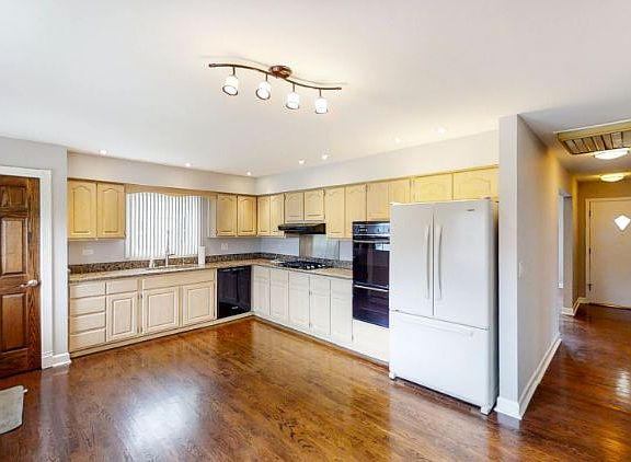 CHECK OUT THE 3D TOUR!!! Solid Brick Ranch with double front entry doors on a large lot, features 3 bedrooms and 3 full bathrooms and full finished basement. The spacious living room dining room combo has refinished hardwood flooring plus a large picture window for natural light and nice view. Updated kitchen has plenty of cabinets with newer Quartz counters (2018) plus newer sink and faucet. Eat-in kitchen also has newer hardwood floors with room for full sized dining table and chairs. Three bedrooms all have beautiful refinished hardwood floors, modern lighting plus large closets and have all been freshly painted. All newer interior doors are quality solid wood with new trim molding and new hardware. The primary bedroom has a newer updated full bathroom w ceramic tile floor and shower and quality fixtures. The 1st floor main bathroom is also updated with marble tile floor and shower. Finished basement includes a large recreation room with wet bar and lots of storage, a 3rd bathroom with rough shower (needs updating) plus room for a home gym or office or maybe even a 4th bedroom. Laundry utility room is also very large with potential for a play work or craft area. Attic has new insulation (2019) plus an attic exhaust fan and whole house fan. Plumbing and electrical is all newer, including 100 amp breaker panel. Exterior back door to kitchen is brand new with new storm door. AC unit is newer (2019) Large manicured back yard with two patios and long double wide side drive and 2 car garage. Unincorporated. Lower taxes. Lake Michigan water and Public sewer. Elmhurst schools. Home is move in ready and has been professionally painted and cleaned! You can be closed and moved for the holidays!!!