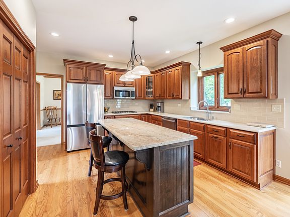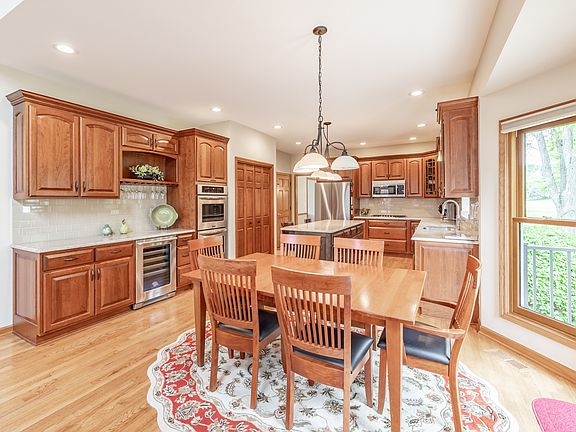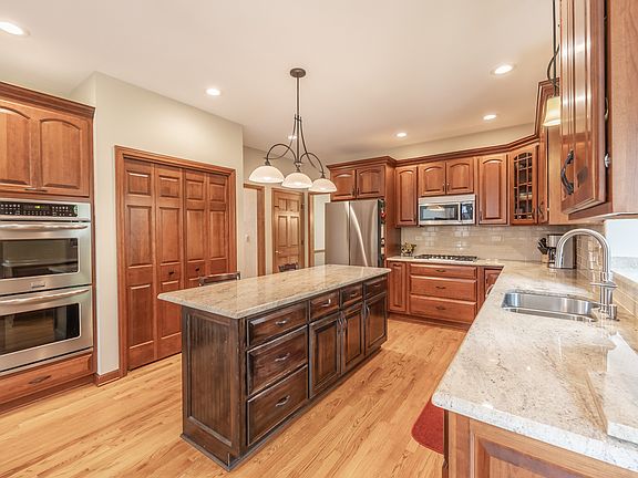 WOW! This is the private location you have been looking for - 3000 sq ft home on a cul-de-sac in the sought after Arbor Creek Subdivision located close to downtown St Charles. The pride of ownership is on display as you walk through the door of this impeccably maintained home. It starts with a gourmet kitchen featuring Amish cherry cabinets, granite countertops, new appliances, including a double oven, wine fridge and under cabinet lighting. Hardwood floors in the entry, kitchen and family room which also boasts a floor to ceiling masonry fireplace w/ gas logs. 5 bedrooms and 3 full baths provide plenty of room for a family. Basement includes a game room, family room, extra bedroom/office & plenty of storage. Sit on your 31' by 15' newer Trex deck ('21) and enjoy the peace and tranquility of a beautiful sunset. Home has a newer roof and siding ('22), top of the line Marvin patio door and many windows ('21) New A.C. ('20) Remote control thermostat, Crown molding & ceiling fans throughout the home. DON'T miss this one!