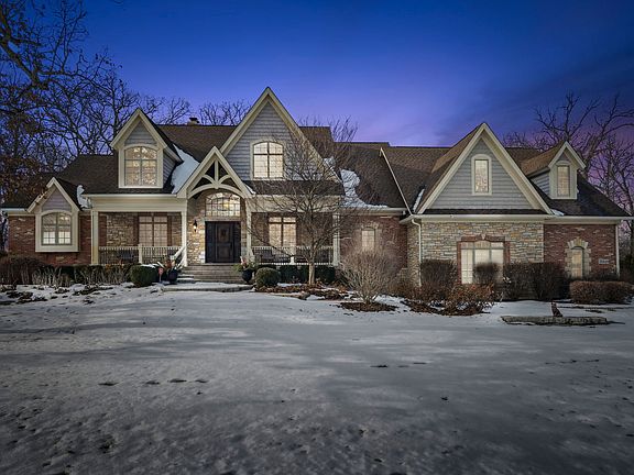 Opportunity is back! Buyers got cold feet. Check out the video tour! Custom built home located in sought after La Fox Woods neighborhood in St. Charles Illinois. Quality and attention to detail best describes this home with Knotty Alder doors, detailed millwork, and high-volume cathedral ceilings are just a few of the great features of this estate. Expansive kitchen which boasts premier appliances such as Dacor double oven, Asko dishwasher & Sub-Zero refrigerator. Luxurious granite countertops throughout, walnut cabinetry, built in study and shelves are all lavishly accentuated via a 13-foot boxed beamed ceiling. The island is central to the kitchen and great for entertaining friends and family. A second additional island is thoughtfully located near appliances for your convenience and can be used for additional food prep. Adjacent to the kitchen is a vaulted hearth room with stone fireplace and close by is the bright and roomy dinette which opens to the adjoining vaulted sunroom with radiant heated floors and walls of windows to view the scenic private wooded back yard. The yard has a composite upper deck, with multi-level brick paved patios, complete with a winding waterfall pond. Primary bedroom with sitting area, has its own ensuite bath with two marble vanities, travertine flooring and over-sized shower and separate jacuzzi tub. There is a spacious walk-in closet with island, custom built shelves and storage makes this unique to this bedroom only. The family room is a masterpiece with a soaring cathedral ceiling and another towering stone fireplace gives this space a timeless, classic look and feel which makes this room ideal for hosting guests on any occasion. There is a separate formal dining room toward the front of the home, next to the grand entrance foyer. Second bedroom with ensuite bath, full sized laundry room, a mudroom off of the attached garage and half bath complete this main floor. The second-floor features three spacious bedrooms, two with ensuite baths. The fifth bedroom is 32x22 and has a private entrance and kitchenette-perfect for in-laws, home office or just a great bonus room. The deep pour finished look-out basement has 10 1/2-foot finished ceilings, a fireplace, a wet bar, rec areas, and radiant heated floors. There is an additional large sixth bedroom with full bath off to the side for whenever you have extra guests visiting. The four and a half-car garage has radiant heated epoxy flooring and wide stairway to the basement. Huge storage, utility with a workout room also located in the basement. There is over 8,000 sq. ft. of living space!
