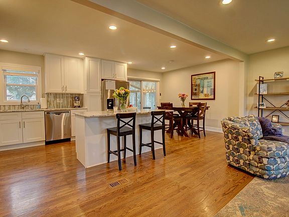 Come fall in love with this stunning remodeled open-concept home that is sure to check all your boxes. This light-filled home sits in one of the cutest neighborhoods filled with gorgeous mature trees and features: an open-concept floorpan with a stunning kitchen with white cabinets, granite counters, stainless appliances and huge island, lovely dining space that is large enough to fit a sizable table for entertaining, and opens to a beautiful living room space with plentiful windows. Rounding out the first floor is an incredible sun room addition with vaulted ceiling and windows all the way around. The upstairs boasts 3 nice sized bedrooms with hardwood floors and ample closet space and a fully renovated bathroom. The lower level has been thoughtfully updated to include a cozy family room, a private office space that can fit two desks, another remodeled full bathroom and a separate laundry room. In addition, this home is on the most incredible lot with a huge fenced backyard and newly installed patio for grilling and entertaining and plentiful outdoor storage in the shed. All of this is in the perfect location close to schools, shopping, dining, and highways.