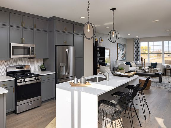 Beautiful and Popular Warrington Plan, Designer Selected For You! Two Suite Home with Private Baths and Walk-In Closets, Convenient Bedroom Level Laundry, Sizeable First Floor Den with French Doors/Transom and Open Great Room with. Gorgeous Kitchen Design Features Bright White 42" Cabinets, Quartz Countertops, Recessed and Pendant Lighting, Stainless Appliances and Island with Overhang for Extra Seating. Primary Bath Features Quartz Countertop, Double Sink, Linen Closet and Full Size Shower with Designer Tile! Main Level Boasts 9' Ceilings and Mannington Laminate Flooring. Lower Level Flex Room can be for Entertaining, Exercise, Guest or Craft Room, or Whatever YOU Dream it to be! Beautiful courtyard location with private balcony.