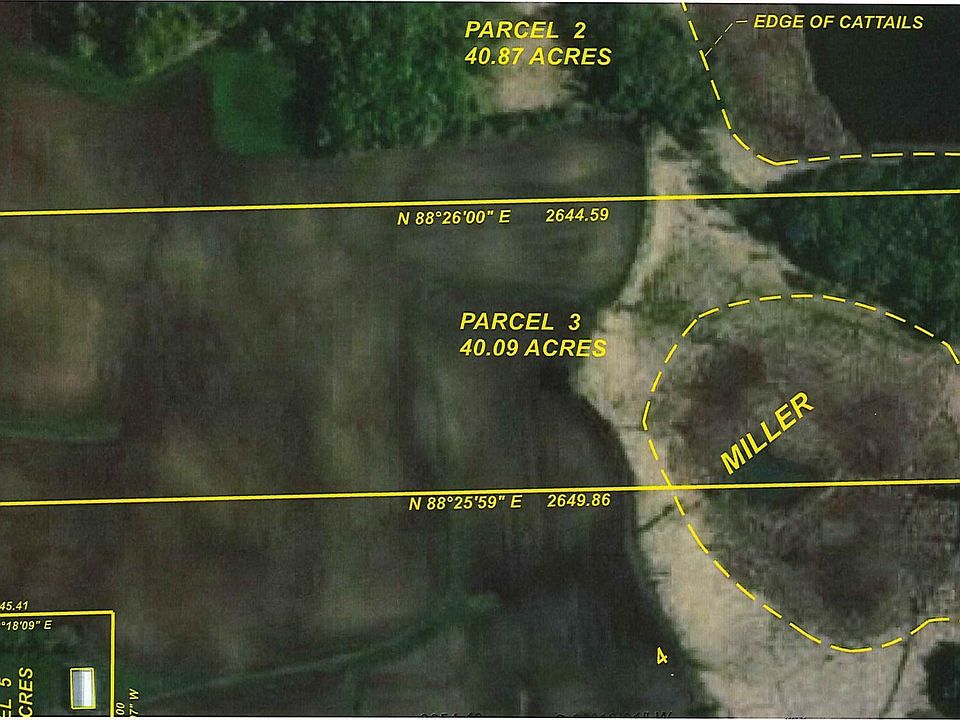 Wonderful wooded 40.09 acres on Miller Lake, mature oak & maple trees, private setting, excellent views of Miller Lake from many spots, great wooded area on lakeshore, many great spots to build your private estate, open field area for crops or pasture. Call for details.