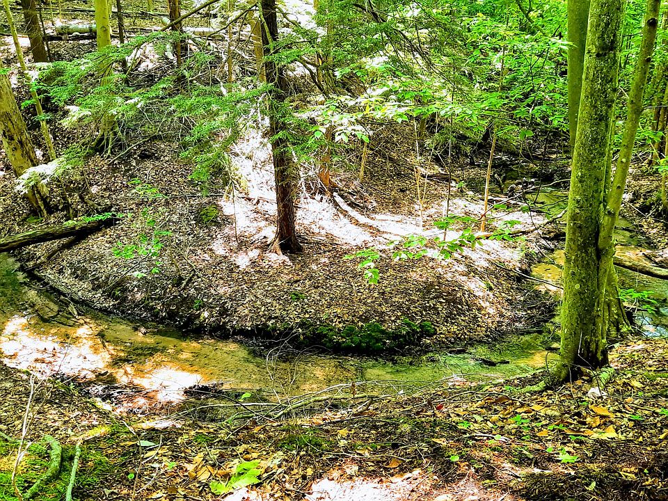 8.5 ACRES in ONEKAMA MI w BUILDABLE LOT on 100 FEET of Level, Paved ROAD FRONTAGE attached to ACRES of PRIME WOODLAND WATERFRONT w aprx 1,000 feet of Crystal Clear CREEK FRONTAGE! Own both sides of the Creek w over FIVE ACRES of GROOMED HIKING TRAILS & several CAMPSITES! Own your own PRIVATE PARK w Bridges over meandering waters, Mossy Trails w Swings taking you over Beautiful Ridges w panoramic views into your own Valley! This is a one-of-a-kind Property just 3 blks from PORTAGE LAKE that channels out to LAKE MICHIGAN. Build your DREAM HOME on Paved Public Road w Village Municipal Sewer, Natural Gas & Great Snowplowing at St. ONEKAMA has Grocery, EMT/Fire Dept, Library, 4 MARINAs, Boat Launches, Restaurants, only 15 mins to AIRPORT hubs fm CHICAGO! OPTION to purchase the Entire 10.09 Acres w Newly Remodeled HOME & 4 splits @ $760k. Enjoy Lake Michigan Beaches, Lighthouses and Piers apx 3 mi West. Bike to many local parks, & Boat the nearby waterways. A Lifestyle Legacy Property!