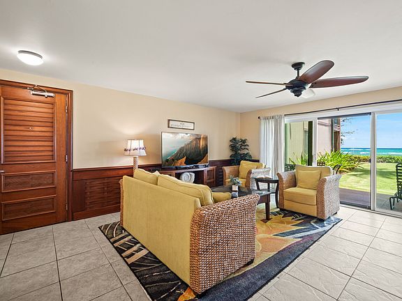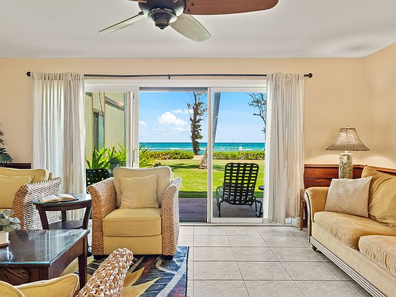 Oceanfront Paradise at Pono Kai! Rarely available, this ground floor corner 2 bedroom, 2 bath condominium offers direct access to a sandy beach and an oceanfront walking/bike path that stretches for miles. Wake up to close up ocean views and enjoy the ultimate island lifestyle in the heart of Kapa‘a town, just steps from shops, dining, and local favorites.<br><br>Highlights include:<br> • Ground floor corner location with lawn and ocean right outside your lanai<br> • Fully furnished and turn-key – excellent vacation rental opportunity<br> • Spacious interior with large ceramic tile floors<br> • Stainless steel appliances and beautiful cabinetry<br> • Primary suite with double sinks and generous layout<br> • Spectacular ocean views from the living room and primary bedroom<br> • Stunning custom woodwork throughout, including rich wainscoting, gorgeous wood doors, and unique handmade wood paddle and turtle wall art that add warmth, character, and authentic island charm.<br>Excellent opportunity to use as a home, vacation retreat, or rental investment!<br><br>Resort Amenities at Pono Kai:<br> • Swimming pool & jacuzzi<br> • Tennis courts & mini putting green<br> • BBQ area & lush landscaped grounds<br><br>Opportunities like this are truly rare to have an Oceanfront condo on Kaua'i with a sandy beach directly in front!