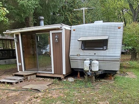 Nicely shaded & sewered lot in Section 4! Features a 1998 Forest River Travel Trailer and Room Addition. There is a grandfathered in solid cement crawlspace under trailer. Recents upgrades include new enclosed entrance to addition, new shed, new floor joist and subfloor along with new electric in addition and shed. The furnace/AC does not work, fridge needs to be replaced. This lot's location is just a short distance to Bass Lake, Sunset Lake, Comfort Station, and Playground. Call today for a showing! Please note that Woodhaven Lakes is a gated recreational community and cannot be used as a primary residence or homestead. You must be accompanied by a broker to view any properties, YOU CANNOT ACCESS THE CAMPGROUND WITHOUT A PASS. Property owner pays the association fees.