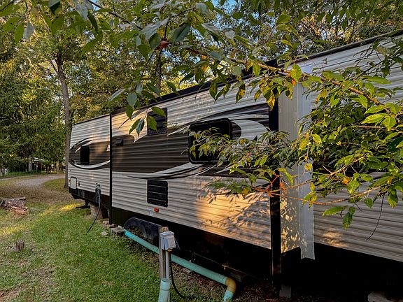 This listing package incudes a 2017 Avenger travel trailer with an abundance of rich cabinetry throughout and an outdoor kitchen. The pie shaped lot includes a gazebo so you can enjoy the outdoors-rain/shine! A large shed with a metal roof for storing all the camping necessities. Also included is a 2018 Kymco Super850 scooter for your enjoyment! Call to schedule a showing on this lovely listing today. Gated facility-must be accompanied by a Real Estate Broker to view listing. Property owner is responsible for yearly assessments. This is not a homestead property.