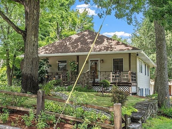 Welcome to this cozy and cute North Chelmsford Bungalow! On this site in 1985 the previous home was taken down by the current owners and completely rebuilt. Lots of special touches and a great open floor plan too. Sellers love the great neighborhood, hardwood floors, the restful farmers porch, leading into a light filled living room with a vaulted ceiling. The finished walkout basement has recent solid vinyl plank flooring too and great space for fun. Don't miss the interior and exterior stonework, a mini split for AC, and the big shed in the level backyard and many plantings .Then of course the views of Freeman Lake will make you smile too! Come for a visit and you will fall in love!!