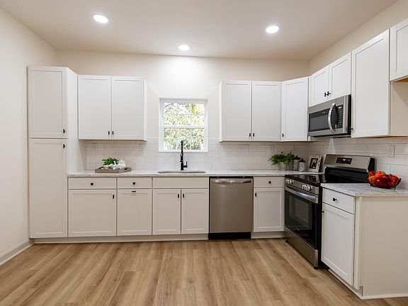 Welcome Home! You can't find a more charming BUNGALOW on .44 acres!! The owners have added their special touch at every turn and you will be delighted with the final result. A rocking chair front porch sets the tone right away and leads you into the living room with LVP wood style flooring, oversized eat in kitchen with GRANITE counters, TILE BACKSPLASH and STAINLESS appliances. This home features a laundry room with plenty of space for a mudroom option. The bathroom is roomy with tiled tub/shower, updated vanity with new fixtures and hardware. Freshly carpeted bedrooms and BRAND NEW WINDOWS throughout. The backyard feels like a retreat with large established trees and flat grassy space to play. No Hoa, walk to park nearby.