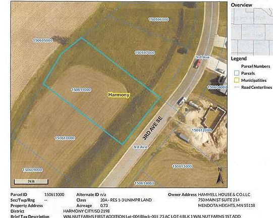 Build your new home in Harmony! This lot offers the opportunity for daylight or a walk out basement. Spacious .73-acre lot, surveyed on the south edge of town, offer easy access and endless possibilities from gardening to room for outdoor fun and relaxation surveyed and all assessments paid. All assessments & property taxes are paid up to date by seller.